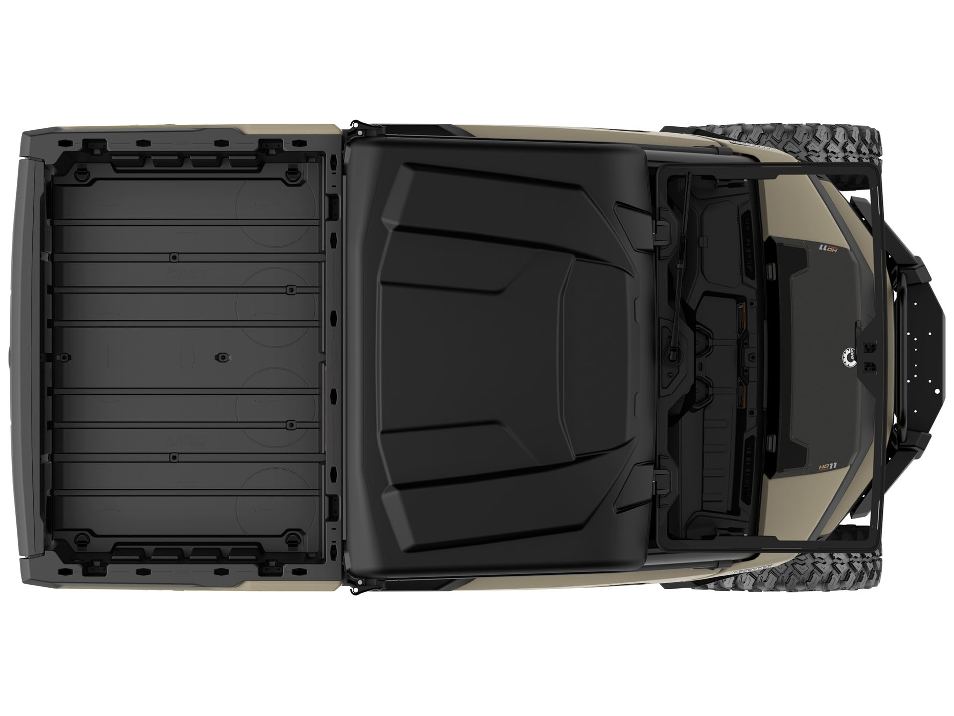 Storage - Weather resistant above gage glove box including protected cellphone area and USB‑A plug, Weather resistant passenger glove box with USB‑C, USB‑A & DC outlet, Cubby storage and lower dash storage, 3.7 gal (14 l) removable bin