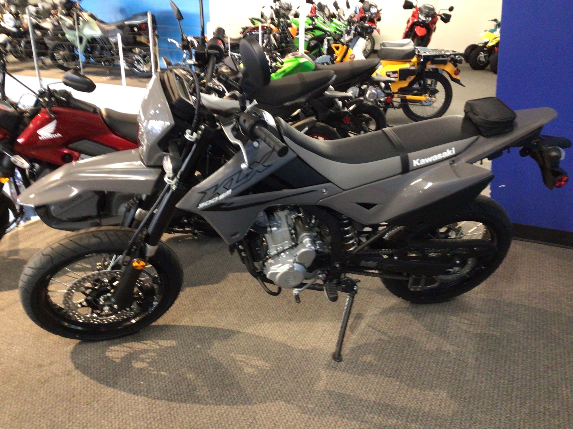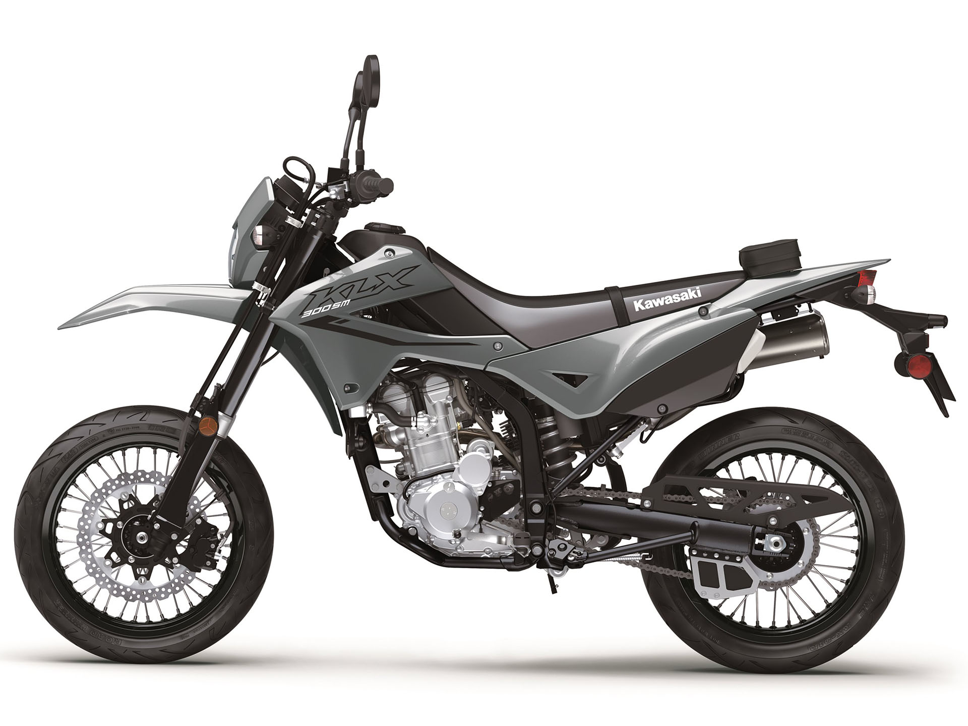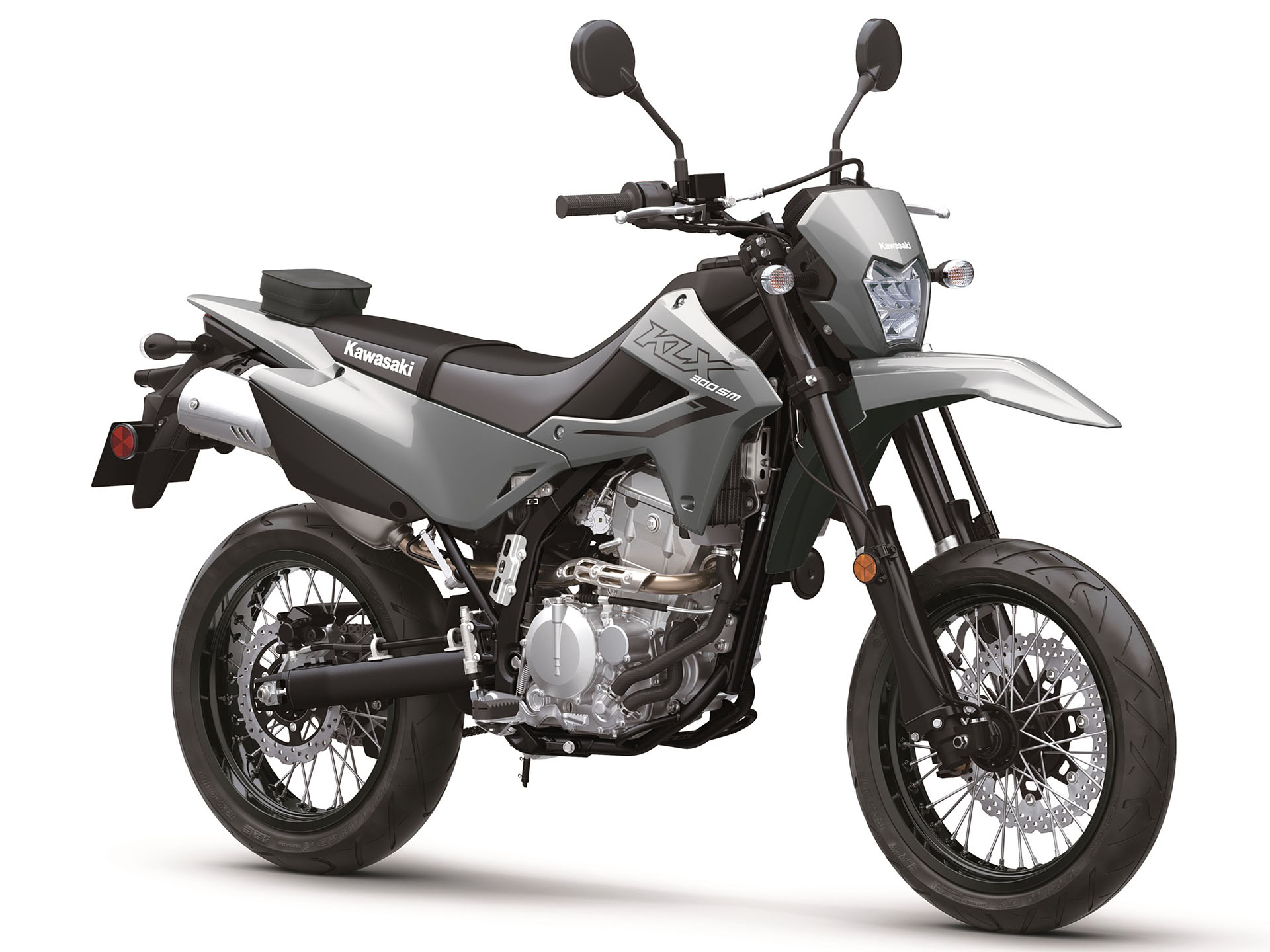 The class-leading KLX®300SM lightweight motorcycle takes the fun to the streets in full supermoto style. A quick-accelerating engine, paired with light, agile handling helps riders of all skill levels maneuver through city traffic, navigate country backroads, or experience the exhilaration of supermoto racing at a track. Suspension, wheels, and brakes have been tuned for supermoto-style performance.