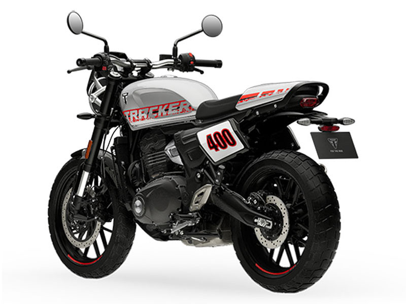 Stripped-back flat-track attitude meets unmistakable design. Ride the dominant style and bold presence of the Tracker 400.